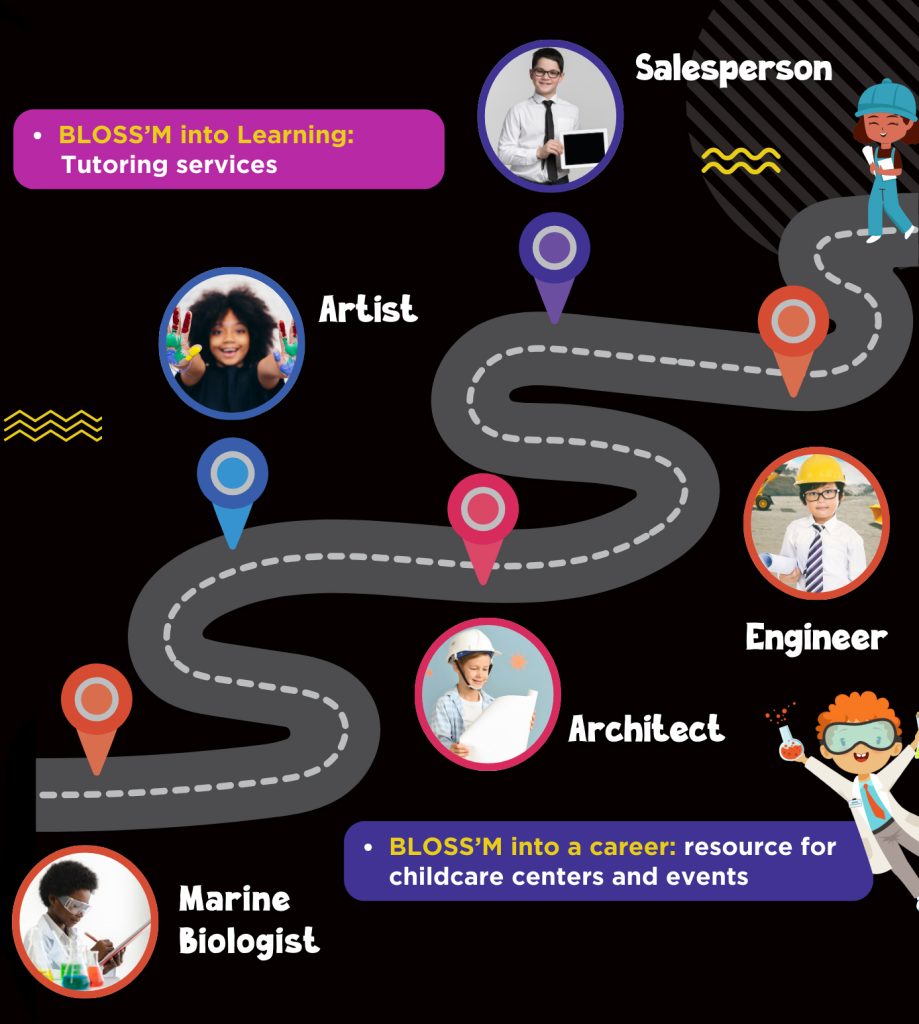 BLOSS'M is a mobile, flexible learning lab that offers engaging, career-connected activities designed to remove the anxiety from learning. In a safe and secure environment, children can explore a wide range of careers, broadening their understanding of the world’s opportunities with customizable learning adventures.